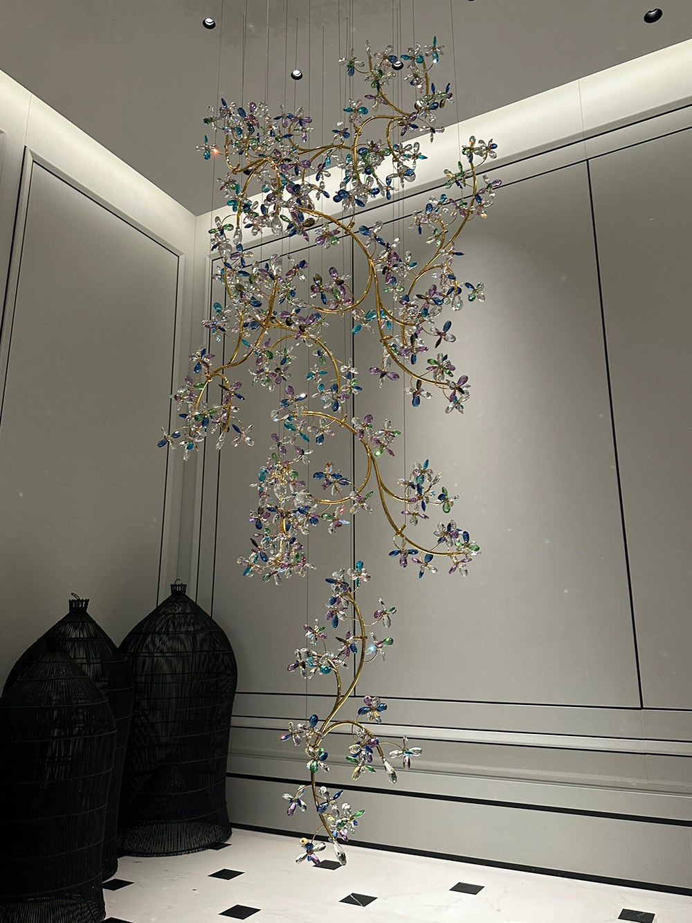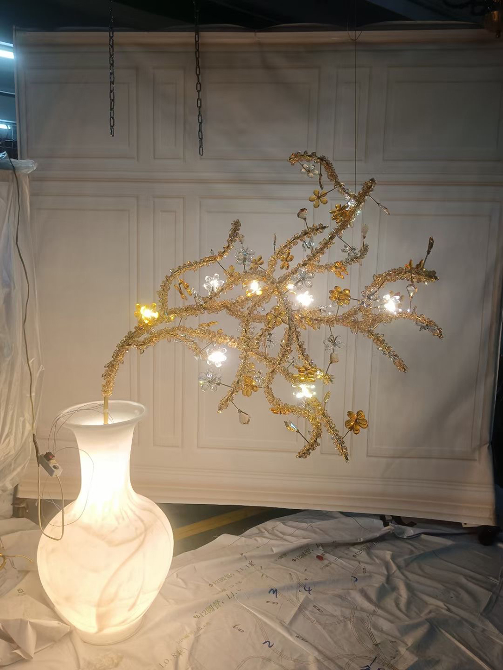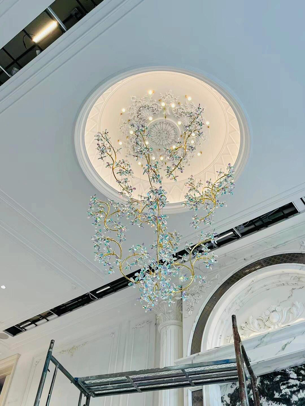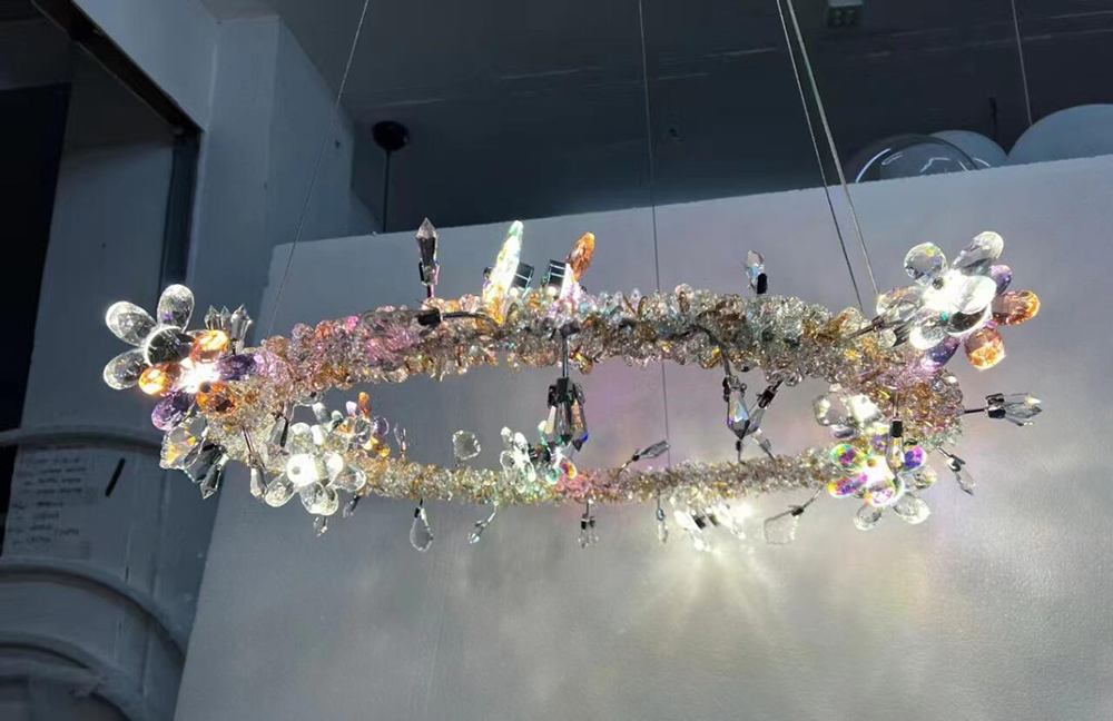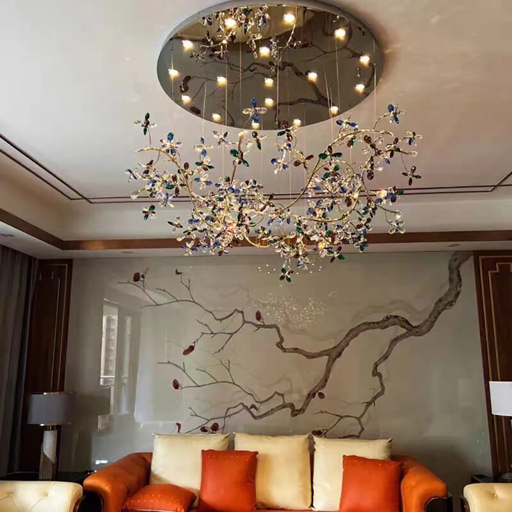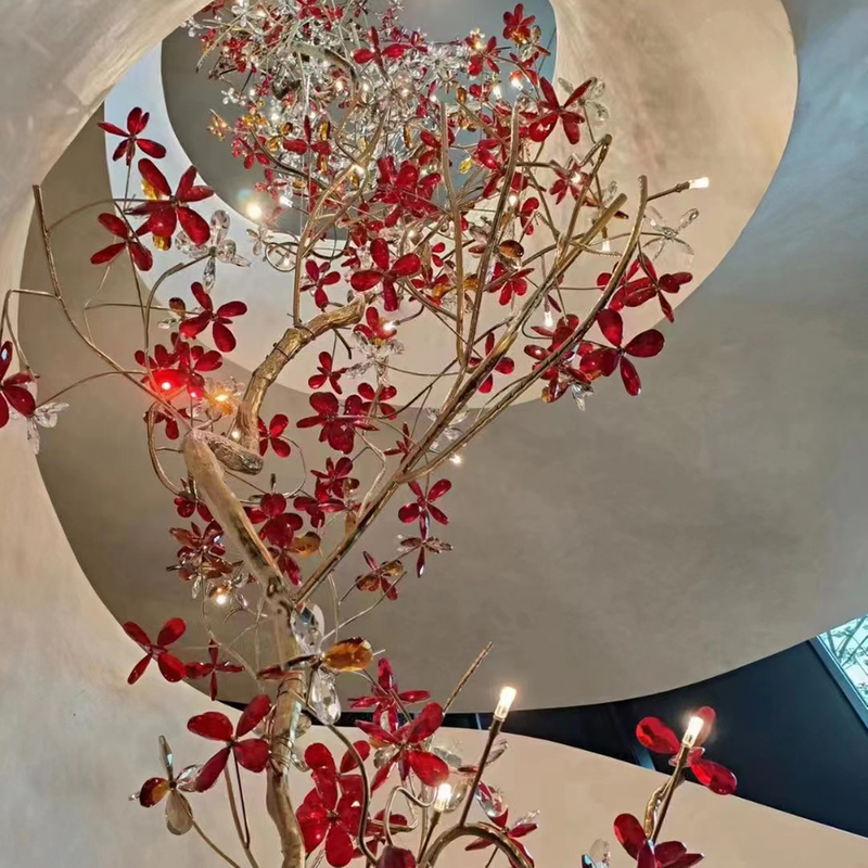 | Name | Custom Creative Design Crystal Flower Chandelier Banquet Hall light Hotel Restaurant Villa Stairway Pendant lamp |