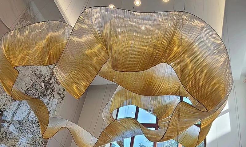 This dancing streamer light resembles a wave chased by the sea breeze. Continuing the overall spatial shape of the building, the space is formed into an abstract and flowing art space through the spiraling posture. It not only creates the beauty of the space, but also enriches the three-dimensional image of the entire space.