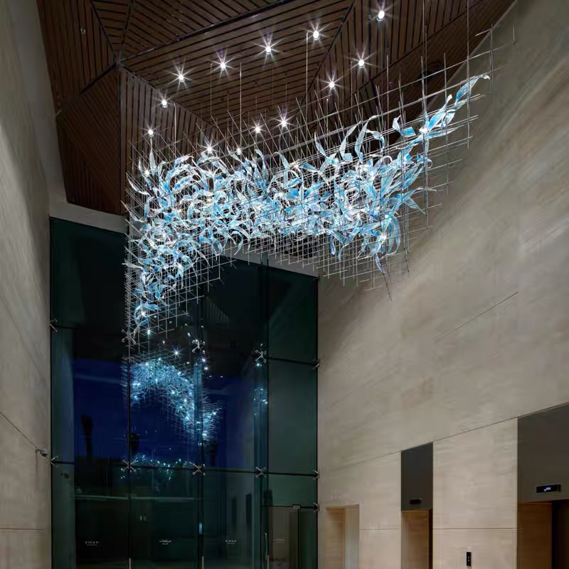 | Name | Business project Made Nordic Art Glass Tube Curve Commercial mall Hotel Hall Led Chandelier |