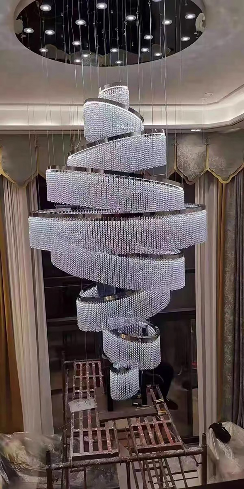 | Name | New Product Stairway Hotel Lobby Banquet Hall Modern Luxury Glass Custom Project Led Chandelier Lamp |